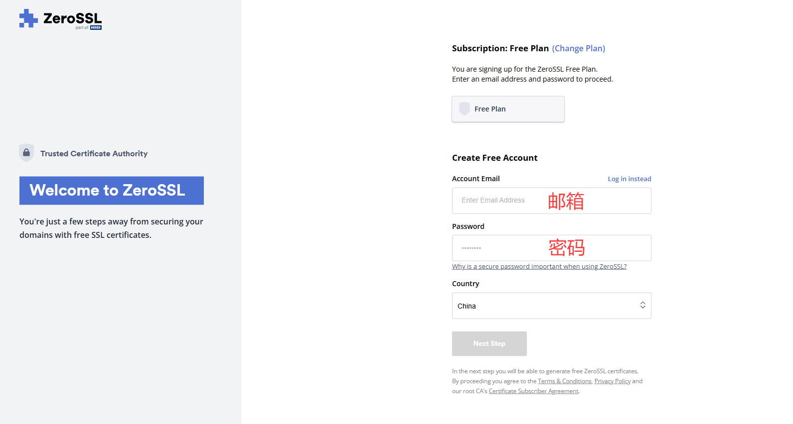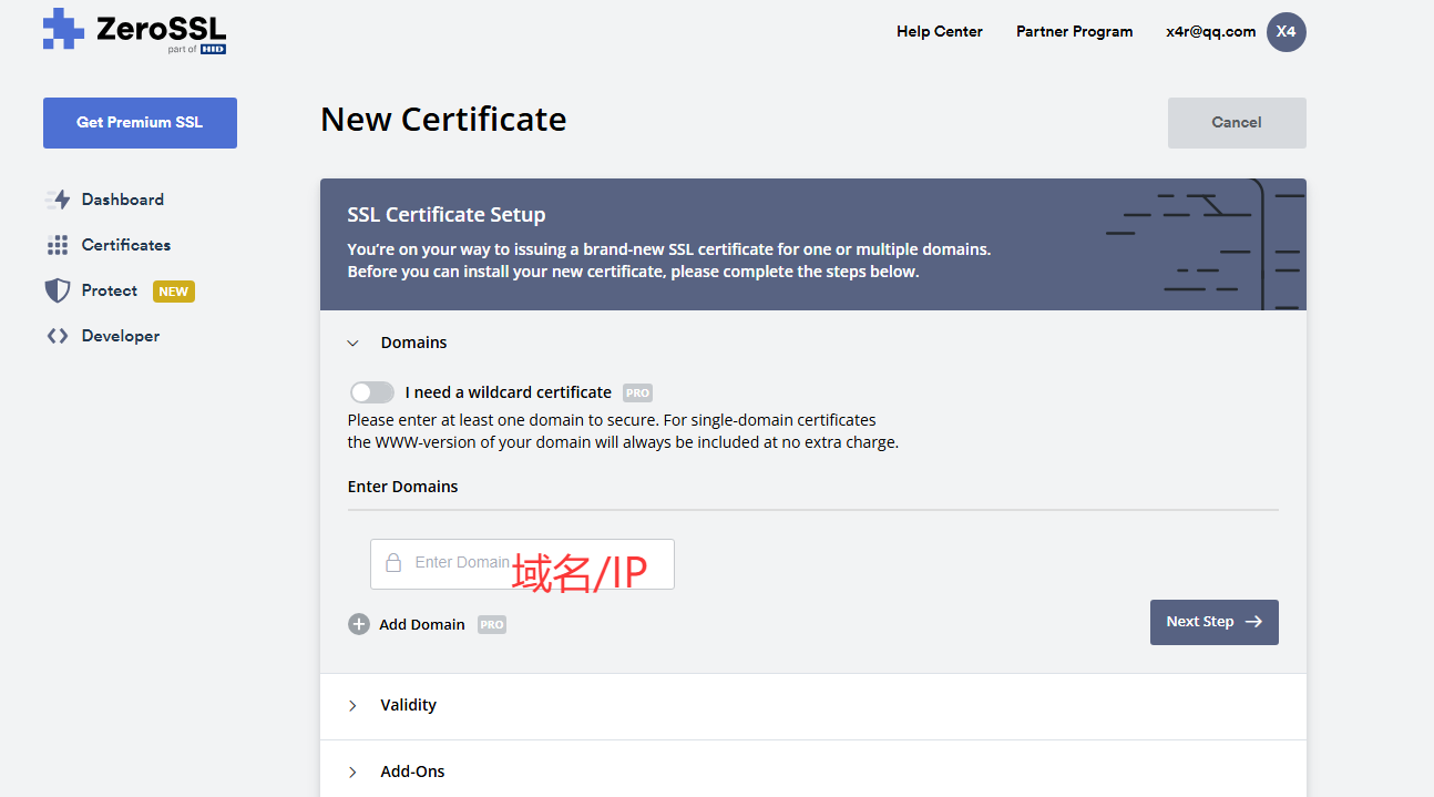 前往https://zerossl.com注册
