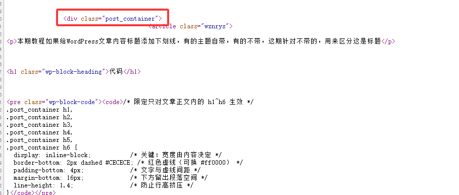 本期教程如果给WordPress文章内容标题添加下划线,有的主题自带,有的不带,这期针对不带的,用来区分这是标题