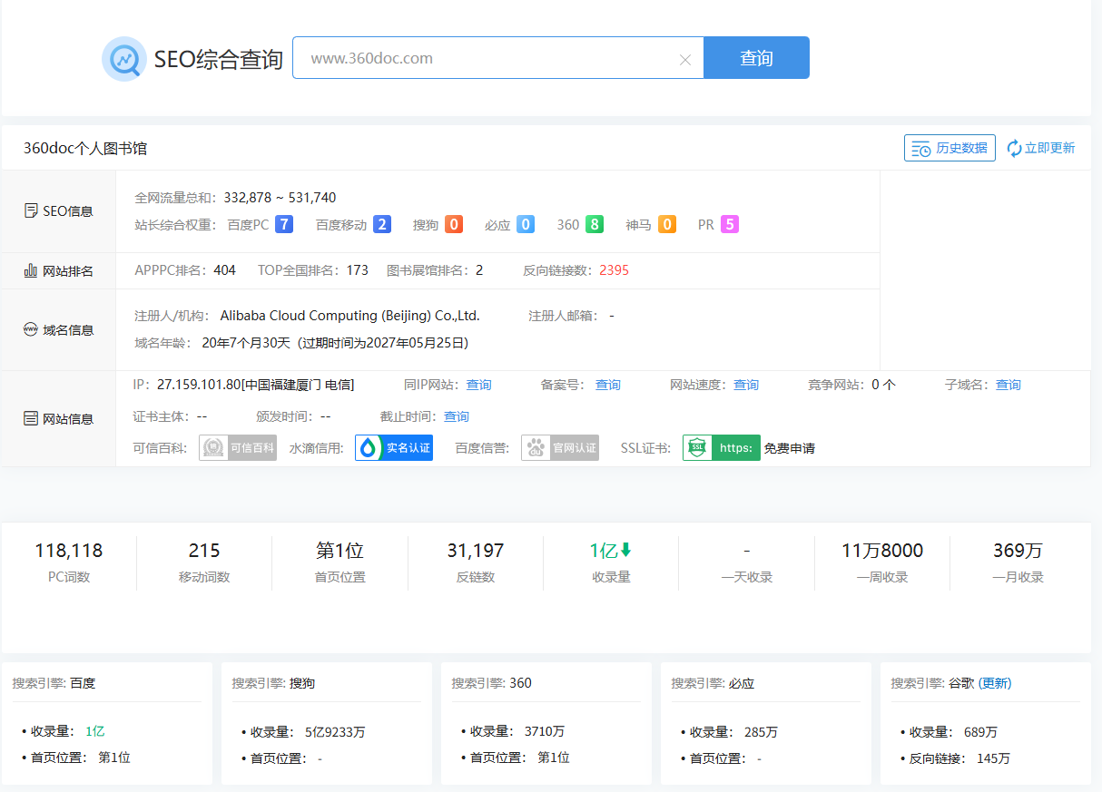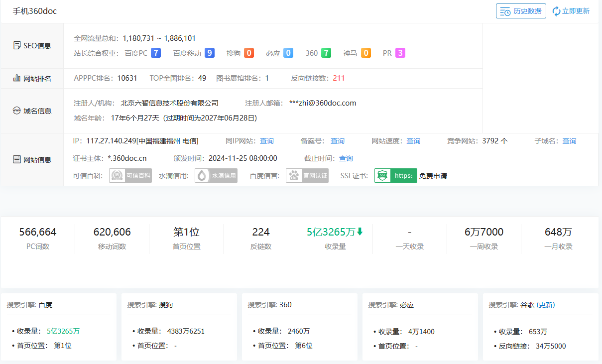 360doc有两个域名,一个是PC端:360doc.com,一个是WAP端:360doc.cn,都是权重9的超级大站