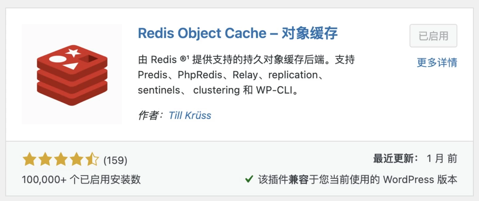 5、wordpress后台安装Redis插件,并且启用。