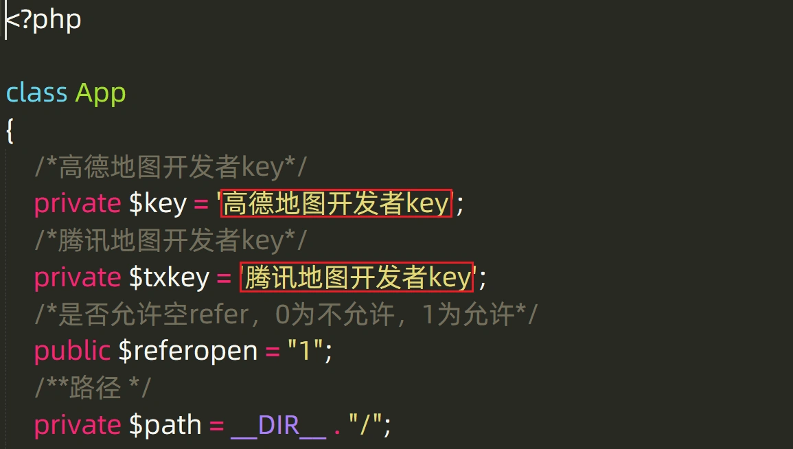 3. 编辑index.php文件,按照文件内的注释,替换其中的 Key。