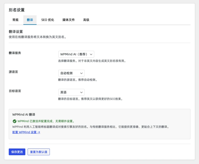 并且文派也在去年出了答案——WPMind 文派心思 AI 插件。虽然第一版差强人意 ,但是基本功能都可以正常使用,并且我们已经完全重构了新版本的文派心思,完全适配了国内外的 AI 和扩展了系统 GEO 功能,已经测试运行近三个月,效果还是不错的。我们原生添加了国产和开源模型的支持,各项功能都可以正常运作。