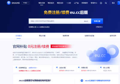 知名注册商GNAME推出限时福利,免费为每个用户提供最多3个 .eu.cc 域名注册资格,无需付费任何费用,到期前90天可以免费续费,速来领取! 什么是 .eu.cc 域名? .e…